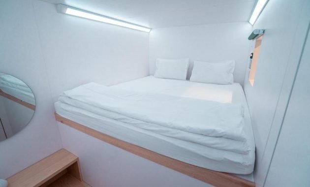 Selain diberikan tempat tidur, bantal, dan selimut, di dalam pod juga ada charging port, meja kecil, dan cermin yang bisa digunakan selama menginap.