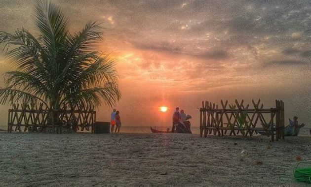 Menikmati suasana matahari tenggelam bersamaan dengan langit di bagian barat yang nampak seolah-olah dipenuhi warna jingga. Lalu, deburan ombak cukup tenang dan tidak begitu besar dapat menjadi harmoni alam yang menyenangkan pikiran.